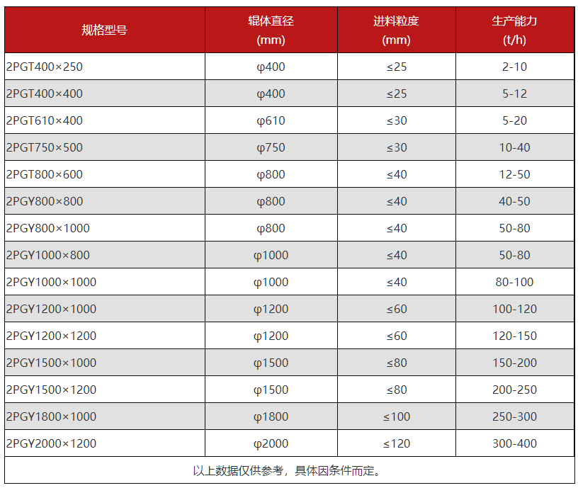 市場(chǎng)生產(chǎn)這類對(duì)輥制砂機(jī)設(shè)備的廠家有很多,不同廠家產(chǎn)出設(shè)備型號(hào)多少肯定是有差異的。這里以紅星對(duì)輥制砂機(jī)設(shè)備為例,具體設(shè)備型號(hào)規(guī)格羅列如下: